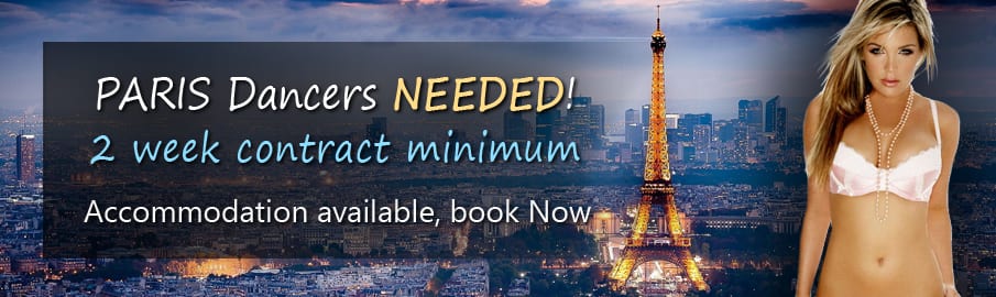 Lapdancing jobs available now in Paris, Poledancing in Paris. Pole dance in Paris, work in this busy Lap Dance club in Paris. Good management, good conditions, enjoy the sights in Paris whilst working as a Lap dancer.